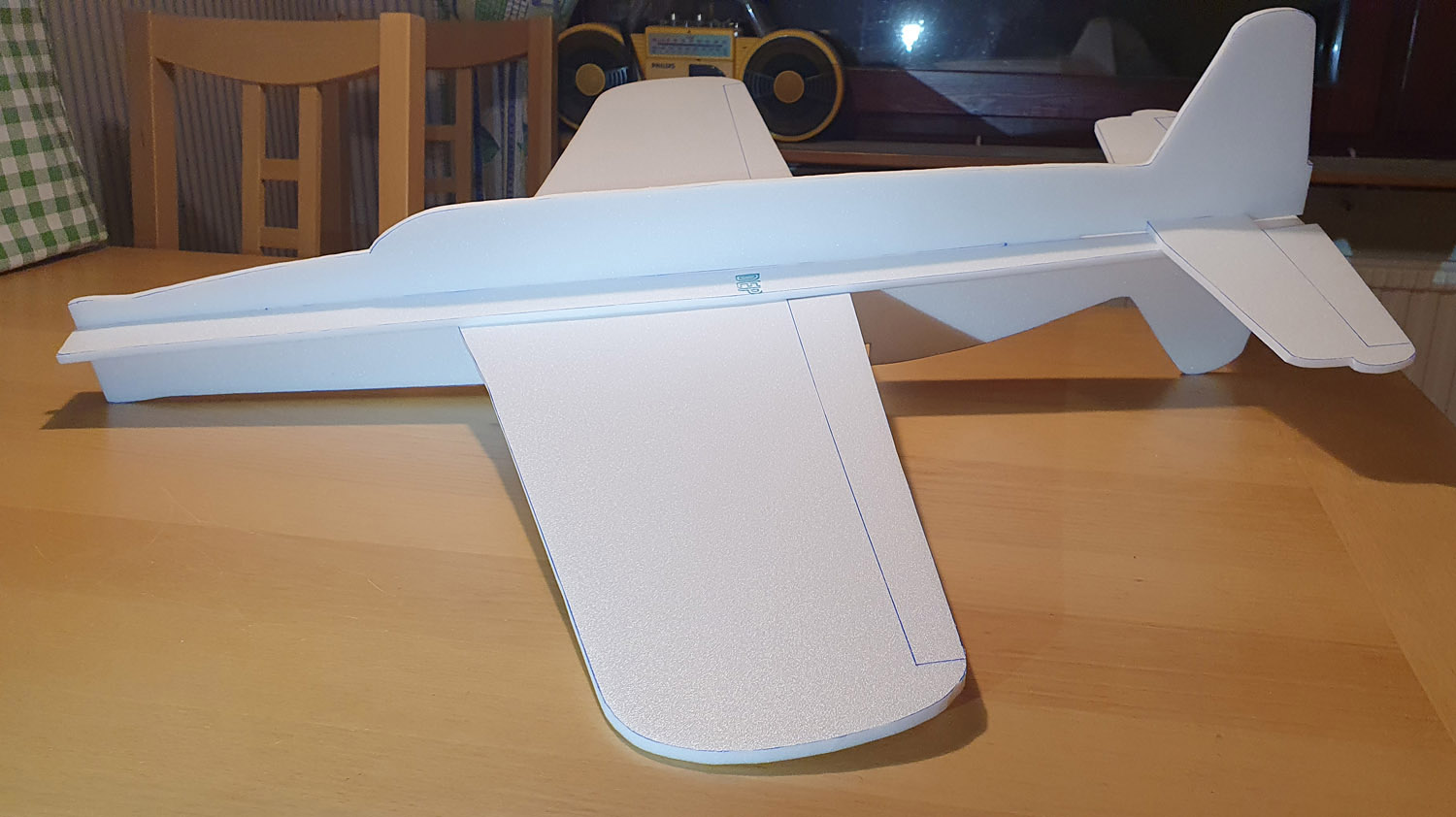 2024-09: Jag har tagit bort den bakre motorn och bytt ut motorn fram. Spännvidden och kordan är minskad samt även stabbe och kroppen har tagits ner i storlek.
