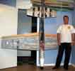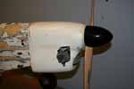 070305: Efter prov med avvägning av tyngdpunkten så insåg jag att motorn måste fram lite. Ett nytt motorspant tillverkades och fästes 5 cm framför det gamla spantet mha fem gängade stänger. Acken till tändsystem fästes på baksidan av det nya motorspantet och tändsystem på baksidan av det gamla spantet. Pipan är på plats och avgaskröken har lötts ihop med avgasflänsen som skruvas fast på motorn. Kåpan har fått hål för avgassystemet och förgasaren.