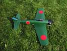 Detta plan har jag konstruerat för att tävla i AirCombat. Kroppen är gjord av vit cellplast klädd med vitlimmad brunpapper. Vingkärnan är skuren ur vit cellplast och klädd med glasfiberväv (50 g/m2) och epoxi. Vingen har en balk av 2 mm plywood. Hela modellen är målad med servalack. Jag använder tre mikroservon HS81 med metallväxellåda. Motor är en Magnum 2.5 kubik cm. Till motorkåpa har jag använt en nederdelen på an vanlig 1,5 liters PET-flaska. Dekalerna är utskrivna med färgskrivare på vanligt vitt papper och pålimmade med vitlim. Jag har sedan lackat dekalerna för att bränslesäkra dem. Planet flyger mycket bra.