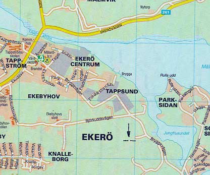 Telefonkarta sidan 52, rutorna D6-E6. Kör Ekerövägen förbi Drottningholm ut på Ekerö. Sväng vänster och kör igenom Ekerö centrum, följ Bryggavägen fram till backen som syns från vägen. Kommer du från söderförort tar man färjan från Slagsta till Jungfrusund. Kolla även in bilder på Mälaröarnas Alpina SkidKlubb (MASK) hemsida. Klicka på kartan för en större version. |