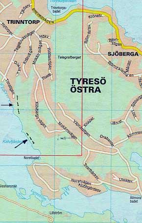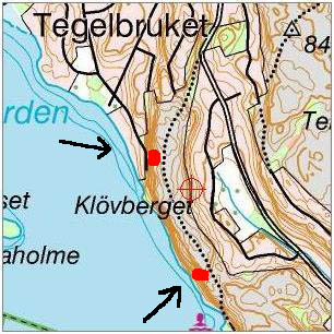 Telefonkarta sid 60, ruta A3. Kör väg 73 söderut, tag av inpå väg 229 mot Tyresö. Fortsätt förbi Tyresö Centrum, Gamla Tyresö och Tyresö slott. Vägen byter nu namn till Breviksvägen. Fortsätt fram till Trinntorpsviken (sid 60, A1) sväng höger inpå Tegelbruksvägen. Fortsätt Tegelbruksvägen ända ner till vändplanen vid vattnet och bryggorna. Parkera. Gå tillbaka på Tegelbruksvägen ca 300 m sväng höger in på Grankättevägen. Efter 100 m svänger vägen 90 grader åt höger. Där finns en stig rakt fram upp genom skogen. Efter 60 meter kommer man fram till kråkvägen. Gå till höger på Kråkvägen tills du kommer till vändplanen där vägen tar slut. Där börjar en stig som leder ut mot hanget. Följ stigen ca 400 m och du har nordväst-hanget på höger sida. För att komma till sydväst-hanget försätt på stigen ytterligare ca 600 meter. Klicka på kartan för en större version. Se även kartan nedan. |