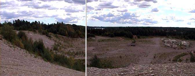 Kör E4 norrut, tag av från E4:an i Bredden. Tag höger inpå Breddenvägen och kör under E4:an. Vid T-korsningen tag vänster inpå Stockholmsvägen. Kör ca 1 km söderut och tag sedan höger inpå Älvsundavägen. Kör cirka 200 meter och du ser hanget på vänster sida av vägen i en gammal grusgrop. Klicka på kartan för en större version. |
