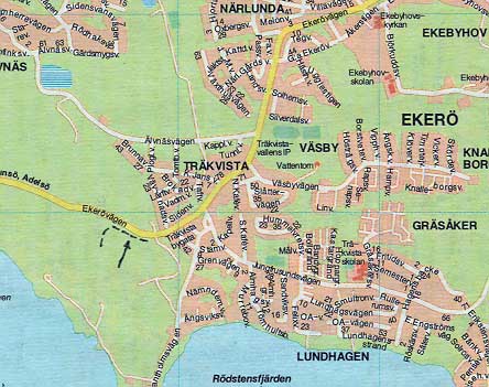 Telefonkarta sidan 51, H6. Kör förbi Drottningholm, genom Träkvista centrum. Grustaget på vänster sida direkt efter Träkvista. Parkera vid sidan av vägen. Klicka på kartan för en större version. |