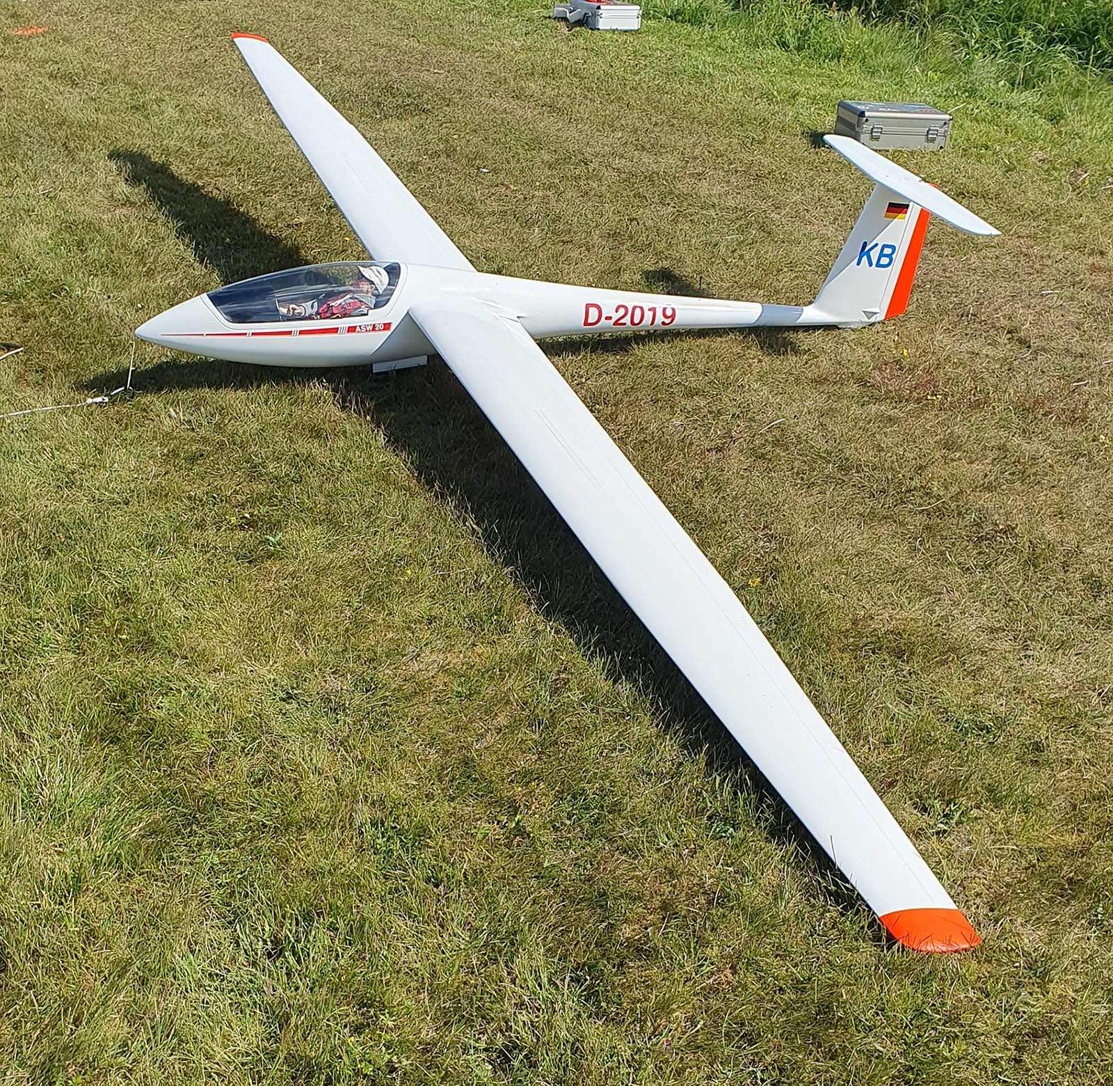 En skala-modell av ASW 20. Originalet tillverkades av Alexander Schleicher i Tyskland. Spännvidd 15 meter. Det finns tre olika versioner (A, B, C) där vingens profil skiljer. B-versionen hade också plats för mer vattenbarlast vilket krävde förstärkningar av planet. B- och C-versionen fanns också med en förlängningdel som monterades på vingspetsen. Dessa versioner, BL och CL, fick då en spännvidd på 16,59 meter. Totalt byggdes 765 stycken plan mellan 1977 och 1990. Franska Centrair byggde även 140 plan på licens.