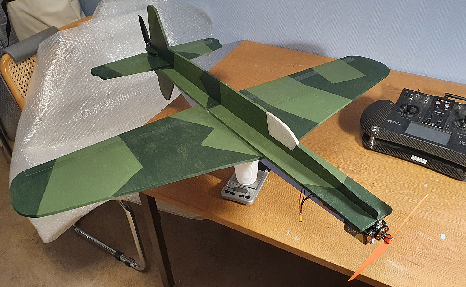 2024-09: Jag har tagit bort den bakre motorn och bytt ut motorn fram. Spännvidden och kordan är minskad samt även stabbe och kroppen har tagits ner i storlek.