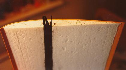 Vingen gjorde jag i tre delar. Mittsektionen är 80 cm med en konstant korda på 20 cm. Vingspetsarna är 60 cm så att hela vingen blir 2 meter. Kordan på vingspetsarna är 20 cm avsmalnande till 16 cm i spetsen. Vingen är gjord i frogolit och plankad med abachifaner. Balkens tvärsnitt är ett uppochnervänt T i kolfiber och plywood. Plankningen limmades med polyuretanlim som vakuumsögs under härdningen. Vingen är klädd med gul Monokote klädsel. Vingens blev lite tung med stark, 630 gram jämfört med 320 gram för originalet.