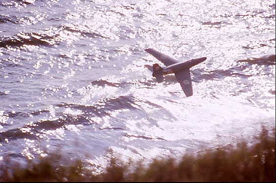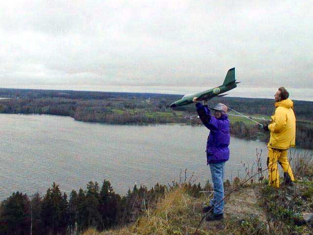 Vid första flygningen gick modellen i backen. Anfallsvinken var fel så höjdrodret räckte inte till för att hålla den uppe. En ny nos byggdes och stabben trimmades om. Nu flyger den riktigt bra dock blev den för lätt! Den behöver lite barlast för att få upp farten där vingen funkar bättre. Barlasten är ca 250 gram. Man får bara se så att man inte flyger för sakta för den klipper snabbt då vingen saknar skränkning.