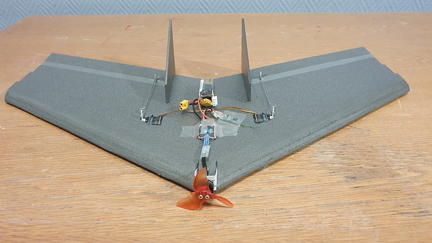 Flygande vinge med eldrift. Vingen är gjord helt i ebisol 3 mm. Den är konstuerad för inomhusflygning.