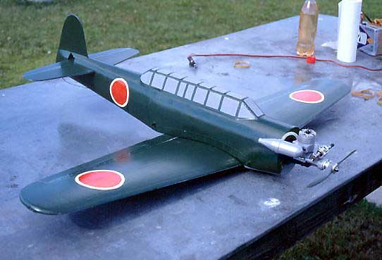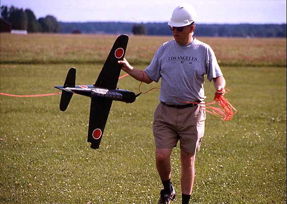 Detta plan har jag konstruerat för att tävla i AirCombat. Kroppen är gjord av vit cellplast klädd med vitlimmad brunpapper. Vingkärnan är skuren ur vit cellpalst och klädd med glasfiberväv (50 g/m2) och epoxi. Vingen har en balk av 2 mm plywood. Hela modellen är målad med servalack. Jag använder tre mikroservon HS81 med metallväxellåda. Motor är en MVVS på 3.5 kubik cm.