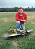 Nu (midsommardagen 2002) har den äntligen flugit. Jag åkte ut till Barkarby för köra motorn och taxa på marken. Motorn har inte velat gå på tomgång. Så fort man minskade gasen så dog den. Efter att skruvat in luftskruven för att få en rikare blandning på motorn fick jag tomgången att fungera bra. Sedan var det dags att prova på taxning. Det var svårt. Vid gaspådrag vill den stoppa nosen i marken. Med full höjd och sakta dra på gasen gick ganska hyggligt att taxa. Men va tusan plan är ju till för att flyga. Jag drog på gasen och vips så lyfte spitten mot sitt första uppdrag. Ett klick trimning på skeven och höjden och planet var klar för "strid". Planet fick gå igenom alla manövrar som jag kan, loopingar, rollar, inverterat, kubanska åttor mm. Draget i motorn var mycket bra trots att motorn inte var särskilt bra inställd. Här finns plats för en del laborerande. Jag ska prova en annan propeller med högre stigning nästa gång. Jag har nu böjt fram landningställen. Så nu är den väldigt lätt att taxa med. Jag fick flytta bak acken för att tyngdpunkten inte skulle förändras.