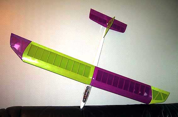 Modellen är ARF från P&B model i Tjeckien. Den är inköpt från MFT. Det är radiostyrd handkastglidare. Styrning sker med höjd- och sidoroder.