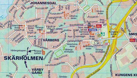 Kör E4 söderut. Sväng av mot Skärholmen/Vårberg. Kör mot Vårberg. Tag in på Vårbergsvägen och följ den fram till Vårbergs sjukhus. Parkera på sjukhusets parkering. Cirka 1 km att gå från T-banestation Vårberg. Klicka på kartan för en större version. |
